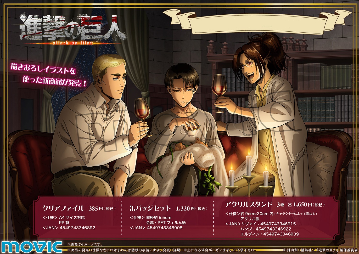 O Xrhsths ムービックの中の人 Sto Twitter 進撃の巨人 リヴァイ ハンジ エルヴィンの描きおろしイラストを使用したクリアファイル アクリルスタンド 缶バッジセットが大好評発売中 この機会にぜひご購入下さい T Co Mzs6hwcove Shingeki